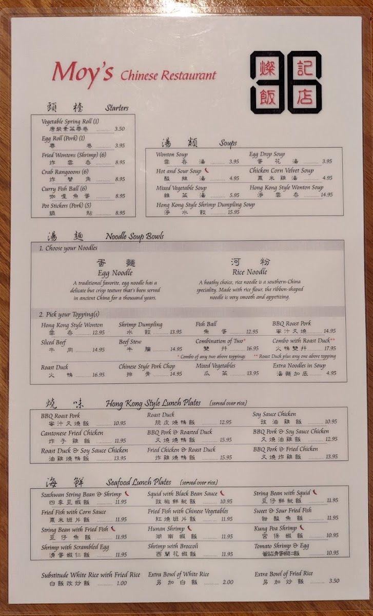 Welcome to Moy's Chinese Restaurant, a delightful culinary gem nestled in the heart of Columbus, Ohio. Located at 1994 N High St, this charming eatery specializes in authentic Cantonese cuisine that warms your heart and tickles your taste buds. With a history spanning over 30 years, Moy's has become a beloved fixture in the community, consistently delivering a menu packed with the mouthwatering flavors of traditional Chinese dishes.